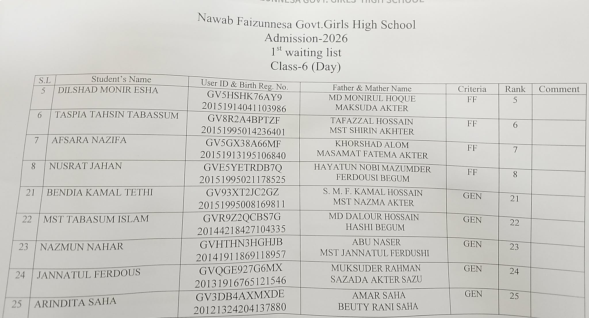 অধ্যয়নরত শিক্ষার্থীর তালিকা